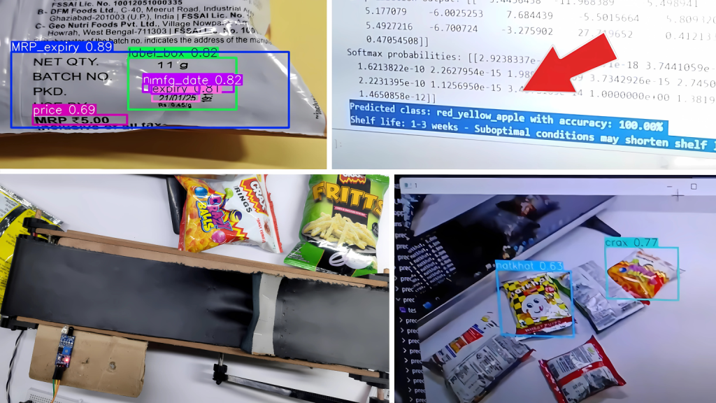 The Autonomous Warehouse Project is a multi-module automation system combining AI + OCR + Robotics + IoT + Automation to bring intelligence and autonomy into warehouse operations. Developed as part of Flipkart Robotics Grid 6.0, the system automates tasks like product detection, freshness evaluation, label OCR, and automated counting. It integrates AI (Computer Vision + Deep Learning), IoT (ESP32-based sensing & conveyor automation), and OCR (text extraction from product labels) into one seamless system.
